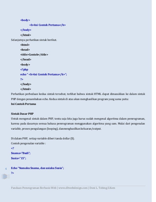 PHP dengan penambahan echo. Kedua sintak di atas akan menghasilkan program yang sama yaitu: